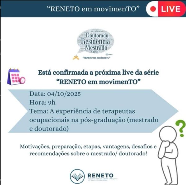 A live abordou sobre a experiência de terapeutas ocupacionais mestrandas e doutorandas.